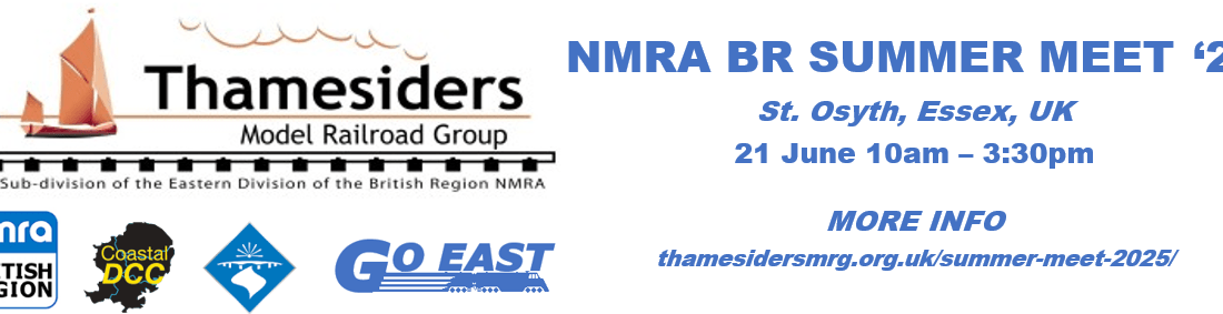 This year the Thamesiders, with support from the NMRA British Region, Orwell Models and Coastal DCC, will be hosting the NMRA British Region’s Summer Meet on 21 June at the Village Hall, St. Osyth, Essex, UK. The postcode for the hall is CO16 8PE and can be reached by public transport. Parking is available both on site and on the Longfields side street. We’ll be officially open to the public from 10am and will close to start breaking down modules at 3:30pm. The hall itself is accessible for wheelchairs.